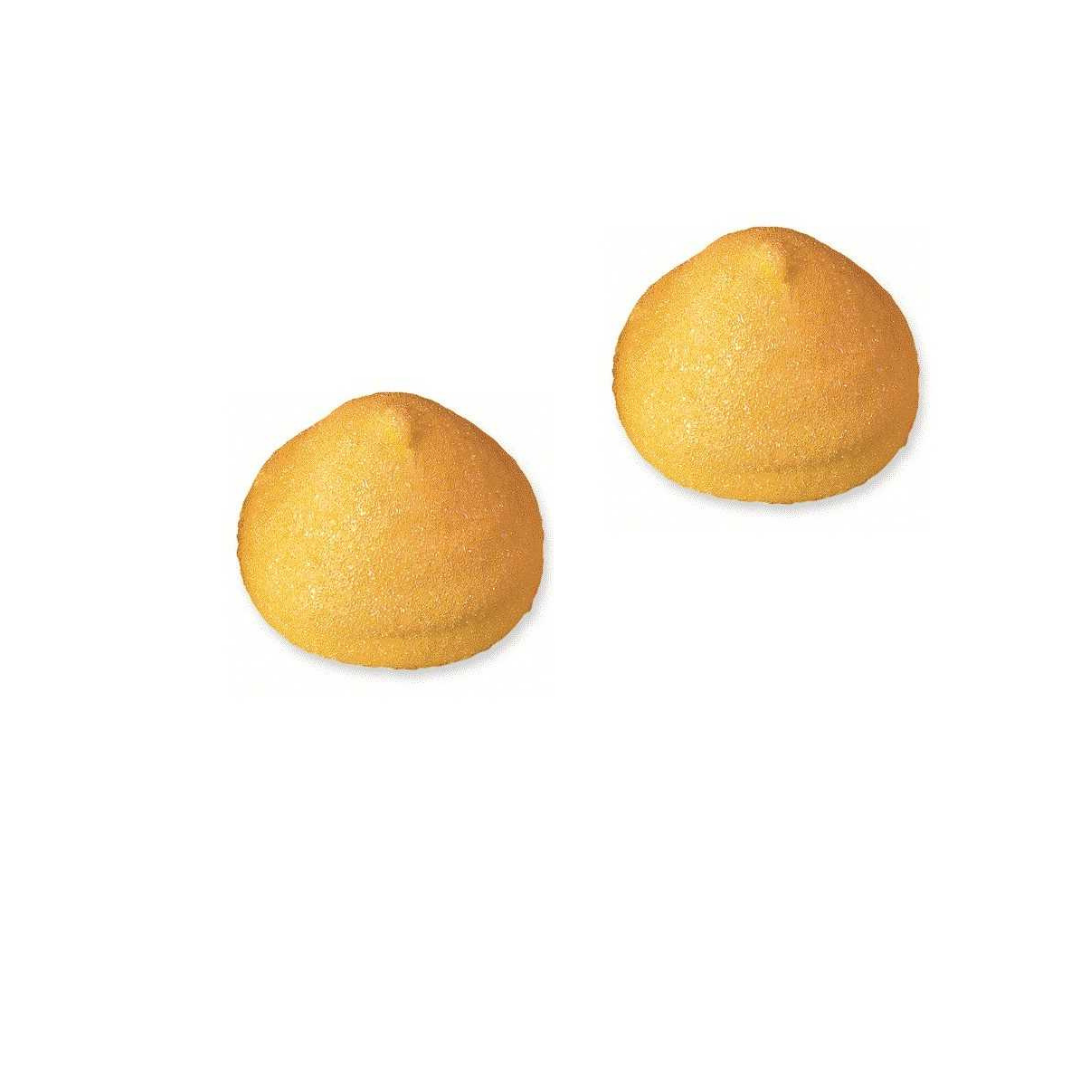 Orange Peach Golf Balls are soft, melt-in-your-mouth marshmallow balls with a light coating of sugar. These marshmallows are perfect for candy cakes and birthday skewers.