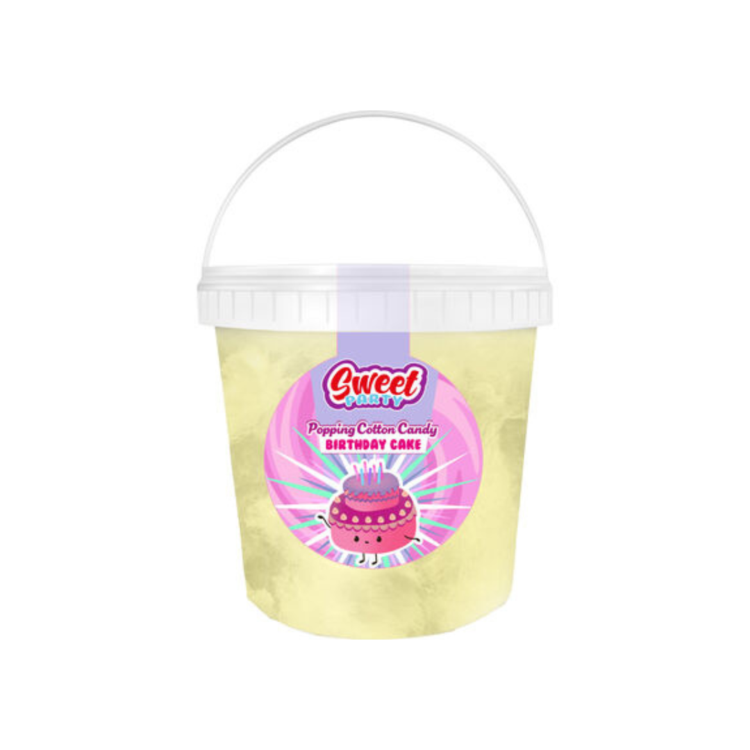 Suikerspin met de smaak van een glinsterende verjaardagstaart voor kinderen.
