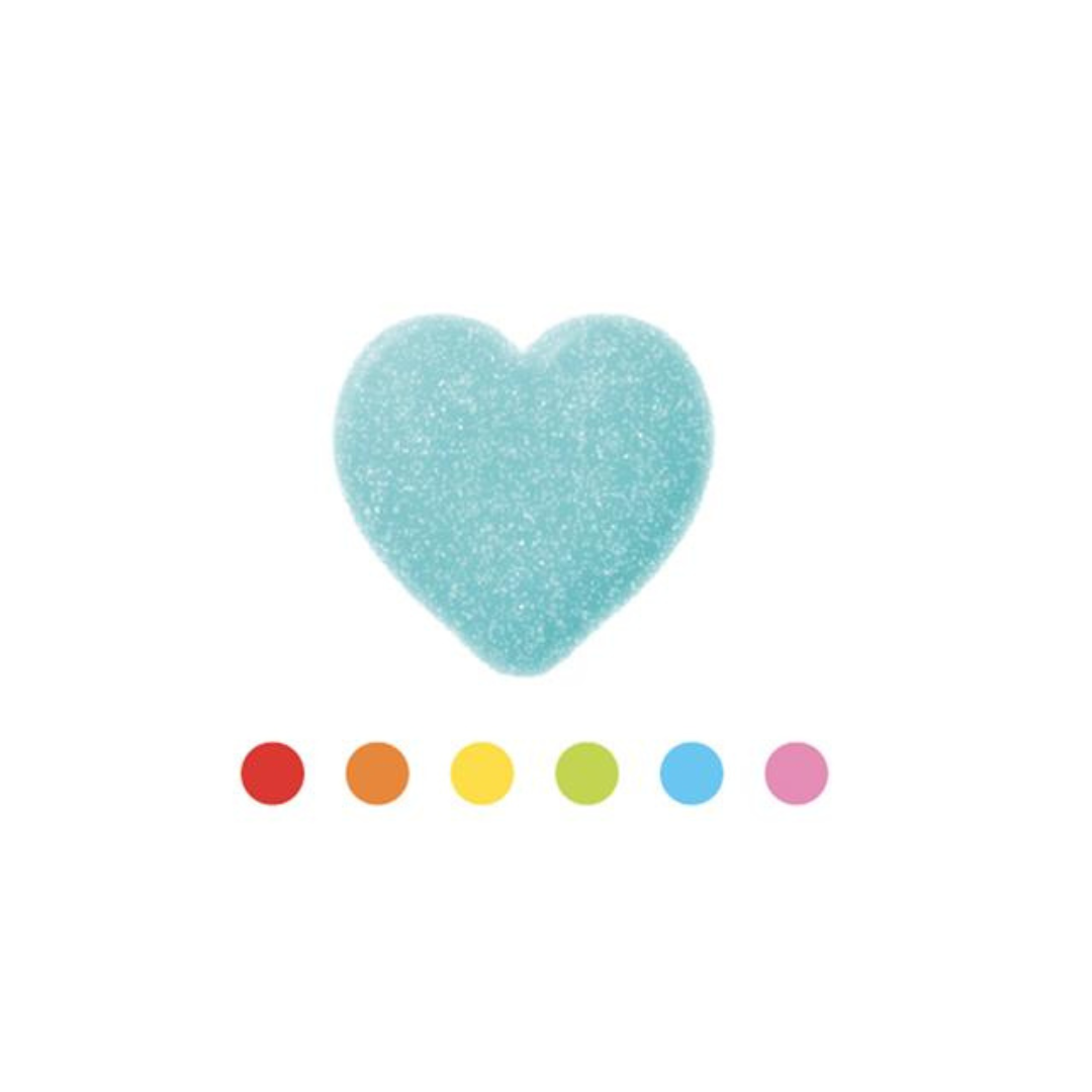 Bonbons colorés en forme de cœurs sucrés et fruités avec une texture moelleuse.